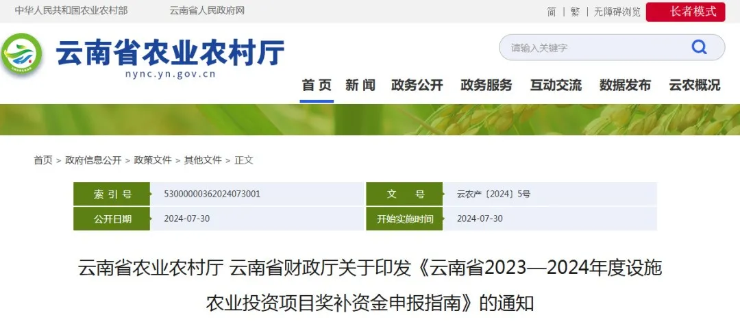 為促進(jìn)云南省設(shè)施農(nóng)業(yè)生產(chǎn)提檔升級(jí)和全產(chǎn)業(yè)鏈發(fā)展,根據(jù)相關(guān)文件要求,云南省農(nóng)業(yè)農(nóng)村廳、云南省財(cái)政廳制定《云南省2023—2024年度設(shè)施農(nóng)業(yè)投資項(xiàng)目獎(jiǎng)補(bǔ)資金申報(bào)指南》,要求加大政策宣傳力度,確保符合條件的農(nóng)業(yè)生產(chǎn)經(jīng)營(yíng)主體及時(shí)了解相關(guān)政策,積極組織申報(bào),公開公平公正遴選項(xiàng)目,切實(shí)推進(jìn)政策落實(shí)落地。