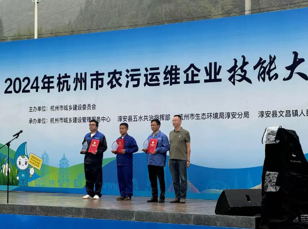 近日,2024年杭州市農(nóng)污運維企業(yè)技能大比武活動在淳安縣舉辦。商達公用集團代表隊以朝氣蓬勃的精神和勇于挑戰(zhàn)的熱情對待比賽,通過精心組織、周到備賽、激烈角逐,在此次比賽中斬獲團體銅獎!同時,參賽選手還獲得兩個現(xiàn)場實操比武二等獎和兩個水質(zhì)檢測比武三等獎的好成績!