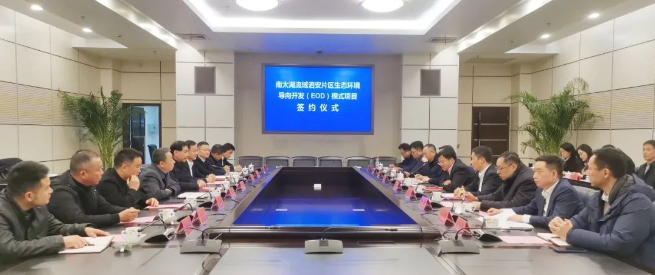 簽約儀式上,長興縣人民政府代表與葛洲壩生態(tài)環(huán)保公司、葛洲壩生態(tài)環(huán)保公司所屬生態(tài)建設(shè)公司、浙江商達(dá)公用集團(tuán)有限公司、長興富美城鄉(xiāng)環(huán)境治理有限公司、中國公路工程咨詢集團(tuán)有限公司共同簽署長興南太湖流域泗安片區(qū)生態(tài)環(huán)境導(dǎo)向開發(fā)EOD項目投資合作協(xié)議。