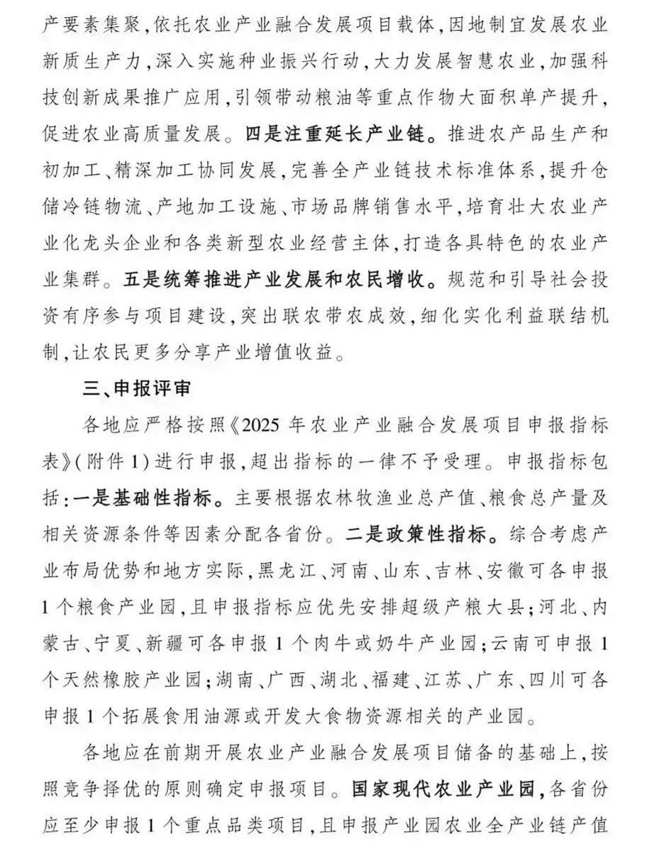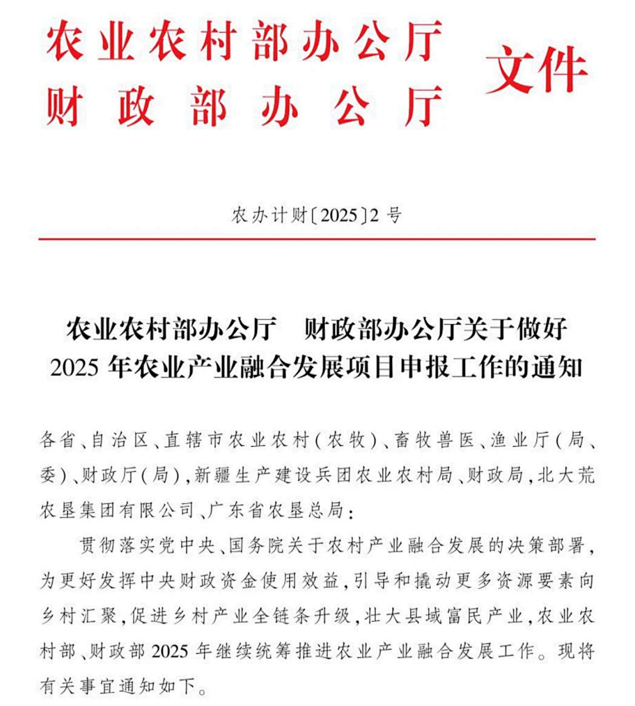 農(nóng)業(yè)農(nóng)村部2025年農(nóng)業(yè)產(chǎn)業(yè)融合發(fā)展項目申報工作已正式啟動,與2024年相比,今年的申報重點包括: