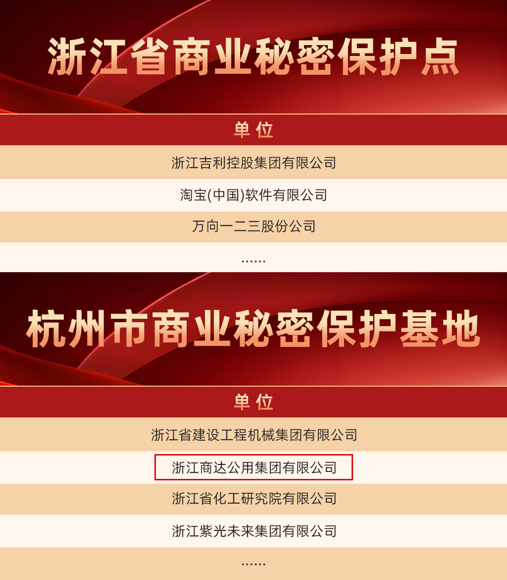 近日,隨著杭州市第三屆“企業(yè)商業(yè)秘密保護(hù)能力提升服務(wù)月”活動的開展,“2024年度杭州市市級商業(yè)秘密保護(hù)基地名單”和“2024年度浙江省商業(yè)秘密保護(hù)園區(qū)、指導(dǎo)站(點(diǎn))名單”正式公布。浙江商達(dá)公用集團(tuán)有限公司憑借在商業(yè)秘密保護(hù)工作中的出色表現(xiàn),獲評2024年度商業(yè)秘密保護(hù)基地。 商達(dá)公用集團(tuán)作為山東公用控股在鄉(xiāng)村振興領(lǐng)域集投、技、建、運(yùn)、產(chǎn)于一體化的全產(chǎn)業(yè)鏈投資發(fā)展平臺,以企業(yè)省級重點(diǎn)“院士工作站”研發(fā)的EEM功能菌技術(shù)為核心,牽頭編制行業(yè)標(biāo)準(zhǔn),先后主持10余項(xiàng)省部級重點(diǎn)研發(fā)項(xiàng)目,取得知識產(chǎn)權(quán)100余項(xiàng),被評為行業(yè)隱形冠軍企業(yè)。 卓越的創(chuàng)新能力背后,離不開公司對商業(yè)秘密的嚴(yán)格保護(hù)。公司通過建立完善的商業(yè)秘密保護(hù)制度,加強(qiáng)員工培訓(xùn),提高全員保密意識,運(yùn)用先進(jìn)的技術(shù)手段對商業(yè)秘密進(jìn)行全方位保護(hù)等措施,為企業(yè)的創(chuàng)新發(fā)展和商業(yè)機(jī)密安全保駕護(hù)航。未來,公司將繼續(xù)加強(qiáng)商業(yè)秘密保護(hù)工作,助力公司高質(zhì)量發(fā)展。