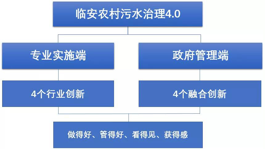 農(nóng)村污水治理首要目標(biāo)是改善農(nóng)村環(huán)境,提升村民的獲得感。臨安把農(nóng)村污水治理全面融合到鄉(xiāng)村振興。通過專業(yè)實(shí)施端和政府管理端實(shí)現(xiàn)臨安農(nóng)村污水治理4.0的創(chuàng)新實(shí)踐。