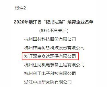 1月14日,浙江省經(jīng)濟(jì)和信息化廳官方公示發(fā)布《關(guān)于公布2020年浙江省“隱形冠軍”企業(yè)名單的通知》,公布了2020年浙江省“隱形冠軍”培育企業(yè)名單,浙江雙良商達(dá)環(huán)保有限公司入選“隱形冠軍”培育企業(yè)。同時(shí)入選的還有浙江中控研究院有限公司、杭州國芯科技股份有限公司、杭州科工電子科技有限公司等企業(yè)。