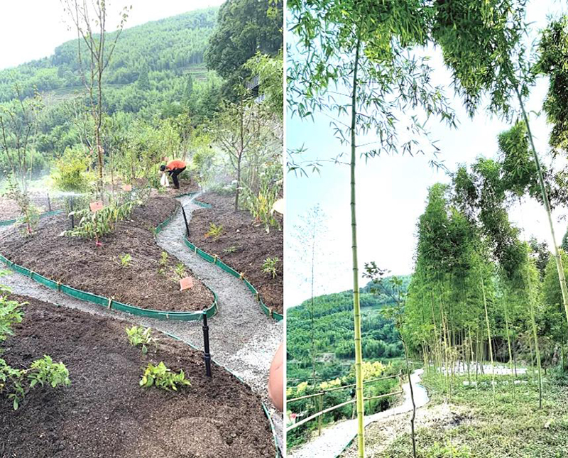百草園中藥種植科研基地在指南村的入口處,有一個占地1500平方的中藥種植示范基地百草園,里面有150多種中草藥,主要以科研示范為主。一方面起到了固碳的作用,另外一方面,為指南村的鄉(xiāng)村旅游增加了一道獨(dú)有的風(fēng)景。