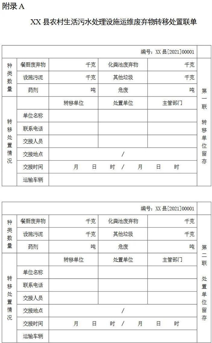 3.0.9 運(yùn)維廢棄物在轉(zhuǎn)運(yùn)、處置中應(yīng)做好臺賬記錄,可采用三聯(lián)單(詳見附錄A)、合同和支付憑證等。
