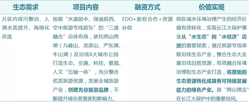 網(wǎng)絡(luò)熱播電視劇《人民的名義》中,有一個(gè)官方范本。劇中講了一個(gè)達(dá)康書記,將林城煤塌陷區(qū)改造成濕地公園和開發(fā)區(qū),最終造福一方的故事。事實(shí)上,這個(gè)故事是有原型的:即江蘇省徐州市的潘安湖國(guó)家濕地公園。2010年起當(dāng)?shù)赝ㄟ^“挖深填淺、分層剝離、交錯(cuò)回填”等技術(shù)改造塌陷區(qū),恢復(fù)土地生態(tài)調(diào)節(jié)功能,同時(shí)建起了濕地公園景觀,接著又規(guī)劃了污水廠、交通路線、幼兒園、醫(yī)院等配套設(shè)施,打造集康養(yǎng)、休閑旅游、電子商務(wù)、高端住宅于一體的現(xiàn)代生態(tài)新城,實(shí)現(xiàn)了從一城煤灰半城土到一城青山半城湖的轉(zhuǎn)變。理論模式結(jié)合實(shí)際,接下來分享一些EOD案例。英國(guó)政治家約翰·伯恩斯曾說,泰晤士河是世界上最優(yōu)美的河流,“因?yàn)樗且徊苛鲃?dòng)的歷史”。作為倫敦最佳視野的所在,泰晤士河整個(gè)濱水公共空間與生態(tài)、商業(yè)、休閑、會(huì)展、博覽等多種城市功能混合交織,這些使得泰晤士河不僅最終成為城市的視線景觀軸,也成為的城市重要的空間發(fā)展軸。二、國(guó)內(nèi)首個(gè)流域生態(tài)環(huán)境治理的EOD項(xiàng)目薊運(yùn)河(薊州段)全域水系治理、生態(tài)修復(fù)、環(huán)境提升及產(chǎn)業(yè)綜合開發(fā)EOD項(xiàng)目。該項(xiàng)目的創(chuàng)新性在于在國(guó)內(nèi)首次將EOD模式應(yīng)用到整個(gè)流域生態(tài)環(huán)境治理中,積極踐行“生態(tài)優(yōu)先、綠色發(fā)展”的理念,是“綠水青山就是金山銀山”理論對(duì)生態(tài)價(jià)值轉(zhuǎn)化路徑的探索。項(xiàng)目工期為20年,中標(biāo)額約為65億元。已順利確定了社會(huì)資本方,進(jìn)入項(xiàng)目執(zhí)行階段。三、240億元投資的三峽集團(tuán)首個(gè)EOD項(xiàng)目2019年9月,長(zhǎng)江環(huán)保集團(tuán)與東湖高新區(qū)正式簽訂戰(zhàn)略合作協(xié)議,確定采用“廠網(wǎng)河湖岸+生態(tài)產(chǎn)業(yè)”方式開展全域合作。目前,長(zhǎng)江環(huán)保集團(tuán)已按照協(xié)議約定完成全區(qū)“三水共治”規(guī)劃及實(shí)施方案,策劃項(xiàng)目總投資約240億元。在為東湖高新區(qū)做好全域水環(huán)境規(guī)劃的同時(shí),長(zhǎng)江環(huán)保集團(tuán)積極拓展環(huán)保領(lǐng)域相關(guān)業(yè)務(wù),在地方政府的委托下開展實(shí)施其最為關(guān)注的生態(tài)環(huán)境治理項(xiàng)目——光谷生態(tài)大走廊項(xiàng)目。四、四川片區(qū)綜合開發(fā)典例——程度懷州新城楊溪湖濕地公園楊溪湖濕地公園項(xiàng)目是成都以EOD為導(dǎo)向的沱江發(fā)展軸片區(qū)綜合開發(fā)的重要項(xiàng)目之一。該項(xiàng)目作為成都平原東北生態(tài)帶的第一門戶,充分利用所在地勢(shì)地貌,打造出了最具“川東淺丘梯田濕地典范”,將為推動(dòng)成渝地區(qū)雙城經(jīng)濟(jì)圈建設(shè)注入更多生態(tài)活力。未來,成都國(guó)際職教城、通用航空機(jī)場(chǎng)、精品酒店、綜合醫(yī)院、商業(yè)配套等都將沿湖布局。而該項(xiàng)目正是國(guó)際熱門的EOD模式的生動(dòng)范例。五、江蘇打造涵蓋20萬噸全地下水質(zhì)凈化廠的試點(diǎn)項(xiàng)目循環(huán)經(jīng)濟(jì)產(chǎn)業(yè)園項(xiàng)目位于蘇州科技城,占地規(guī)模385畝,將涵蓋20萬噸全地下水質(zhì)凈化廠、生態(tài)公園、循環(huán)經(jīng)濟(jì)產(chǎn)業(yè)園等建設(shè)內(nèi)容,總投資規(guī)模約50億元。六、山東日照水庫(kù)流域生態(tài)保護(hù)與產(chǎn)業(yè)開發(fā)項(xiàng)目(2021國(guó)家級(jí)試點(diǎn))實(shí)施以水質(zhì)提升為目標(biāo)的生態(tài)環(huán)境治理工程。對(duì)入庫(kù)水質(zhì)實(shí)施在線監(jiān)測(cè),重點(diǎn)實(shí)施項(xiàng)目區(qū)內(nèi)村莊搬遷、入庫(kù)河口固體廢物攔截、陳疃河濕地和銓元河濕地修復(fù)等生態(tài)環(huán)境治理工程,提升水庫(kù)流域生態(tài)系統(tǒng)的凈化能力,打造水庫(kù)生態(tài)屏障圈。