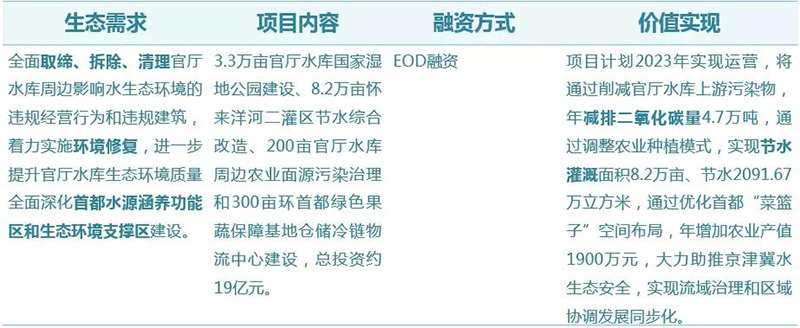 七、河北懷來永定河沿岸及官?gòu)d水庫(kù)周邊生態(tài)環(huán)境導(dǎo)向的開發(fā)項(xiàng)目(2021國(guó)家級(jí)試點(diǎn))延慶區(qū)政府、懷來縣政府、官?gòu)d水庫(kù)管理處、北京市永定河綜合治理與生態(tài)修復(fù)領(lǐng)導(dǎo)小組辦公室、永定河流域投資有限公司將共同成立官?gòu)d水庫(kù)生態(tài)節(jié)點(diǎn)規(guī)劃建設(shè)綜合協(xié)調(diào)組及工作專班,統(tǒng)籌推進(jìn)官?gòu)d水庫(kù)管理范圍確權(quán)立界、水源保護(hù)工程、保水漁業(yè)研究、水庫(kù)清淤研究、區(qū)域生態(tài)建設(shè)等相關(guān)工作。綜上可見,EOD模式下行業(yè)跨度大,且不同行業(yè)專業(yè)要求高,生態(tài)環(huán)境治理、修復(fù)和生態(tài)網(wǎng)絡(luò)構(gòu)建需要專業(yè)的環(huán)保企業(yè)完成;基礎(chǔ)設(shè)施配套、產(chǎn)業(yè)配套及生活配套的建設(shè)需要綜合能力較強(qiáng)的建筑企業(yè);后期產(chǎn)業(yè)導(dǎo)入、物業(yè)管理需要綜合能力較強(qiáng)的運(yùn)營(yíng)商進(jìn)入。因而EOD綜合開發(fā)商應(yīng)具備從項(xiàng)目策劃、產(chǎn)業(yè)規(guī)劃、概念規(guī)劃、工程施工、地塊開發(fā)、資產(chǎn)運(yùn)營(yíng)、產(chǎn)業(yè)招商等一整條產(chǎn)業(yè)鏈的實(shí)施能力。山東日照水庫(kù)流域生態(tài)保護(hù)與產(chǎn)業(yè)開發(fā)項(xiàng)目、河北懷來永定河沿岸及官?gòu)d水庫(kù)周邊生態(tài)環(huán)境導(dǎo)向的開發(fā)項(xiàng)目,日照市東港區(qū)人民政府、日照市水務(wù)集團(tuán)有限公司協(xié)同合作,讀道文旅參與規(guī)劃設(shè)計(jì)落地,通過高質(zhì)量發(fā)展,一方面反哺生態(tài)環(huán)境保護(hù),一方面實(shí)現(xiàn)對(duì)流域經(jīng)濟(jì)的帶動(dòng)作用,助力鄉(xiāng)村振興。并且,結(jié)合中共中央辦公廳、國(guó)務(wù)院辦公廳《關(guān)于調(diào)整完善土地出讓收入使用范圍優(yōu)先支持鄉(xiāng)村振興的意見》要求土地出讓收益的50%(或土地出讓收入的10%)用于農(nóng)業(yè)農(nóng)村的政策。以及《意見》將山水林田湖草生態(tài)保護(hù)修復(fù)納入了用于農(nóng)業(yè)農(nóng)村的范疇。可見EOD模式,在農(nóng)業(yè)農(nóng)村發(fā)展上,將更加受到關(guān)注,并發(fā)揮更大作用。江蘇省徐州市賈汪區(qū)“潘安湖采煤塌陷地生態(tài)修復(fù)項(xiàng)目”,采用“環(huán)境治理+旅游協(xié)同”模式,將塌陷區(qū)建設(shè)成國(guó)家濕地公園,帶動(dòng)區(qū)域產(chǎn)業(yè)轉(zhuǎn)型,也為新農(nóng)村建設(shè)提供有益路徑;江蘇省環(huán)保集團(tuán)與蘇州高新區(qū)合作的“循環(huán)經(jīng)濟(jì)產(chǎn)業(yè)園項(xiàng)目”,建設(shè)內(nèi)容廣泛覆蓋地下水質(zhì)凈化廠、生態(tài)公園、循環(huán)經(jīng)濟(jì)產(chǎn)業(yè)園等。這些案例均是創(chuàng)新拓展生態(tài)價(jià)值方面的溢價(jià),打造區(qū)域內(nèi)EOD模式的項(xiàng)目標(biāo)桿與樣板。EOD真的火了!哪些行業(yè)可以抓住機(jī)會(huì)破圈?什么項(xiàng)目更適合?怎么兌現(xiàn)?注意什么?