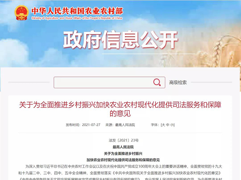 關(guān)于為全面推進(jìn)鄉(xiāng)村振興加快農(nóng)業(yè)農(nóng)村現(xiàn)代化提供司法服務(wù)和保障的意見