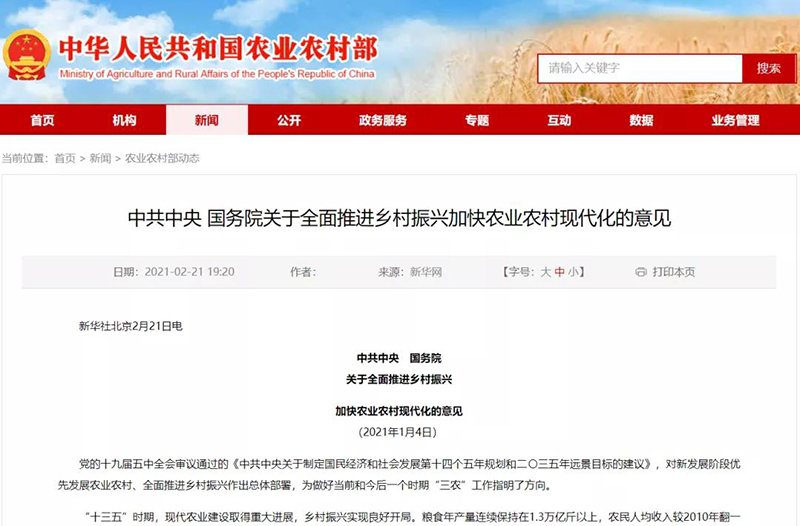 2021年中央一號(hào)文件提出全面推進(jìn)鄉(xiāng)村振興