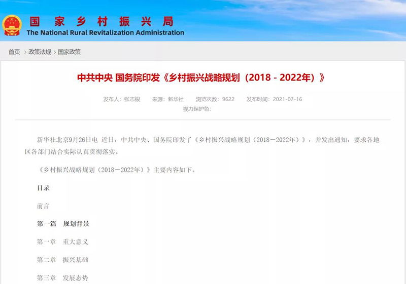 中共中央國(guó)務(wù)院印發(fā)《鄉(xiāng)村振興戰(zhàn)略規(guī)劃(2018-2022年)》