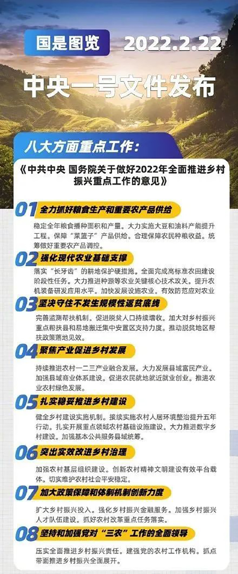 發(fā)布會上,中央農(nóng)村工作領(lǐng)導(dǎo)小組辦公室主任、農(nóng)業(yè)農(nóng)村部部長唐仁健,中央農(nóng)村工作領(lǐng)導(dǎo)小組辦公室副主任、國家鄉(xiāng)村振興局局長劉煥鑫,中央農(nóng)村工作領(lǐng)導(dǎo)小組辦公室專職副主任、農(nóng)業(yè)農(nóng)村部黨組成員吳宏耀分別回答了記者關(guān)于國家糧食安全、中央一號文件的各方面提問。唐仁健特別強調(diào):“全面實施鄉(xiāng)村振興戰(zhàn)略一年多,從實踐工作中,我覺得最最重要的是兩個中心詞或中心句。一是在工作理念上,鄉(xiāng)村振興是為農(nóng)民而興,鄉(xiāng)村建設(shè)是為農(nóng)民而建,這是理念。二是在工作方法上,也是習(xí)近平總書記批示要求的,數(shù)量服從質(zhì)量,進度服從實效,求好不求快,這是方法?!?/span>此前,2022年2月21日,新華社受權(quán)發(fā)布了21世紀以來第19個指導(dǎo)“三農(nóng)”工作的中央一號文件。這份文件題為《中共中央 國務(wù)院關(guān)于全面推進鄉(xiāng)村振興加快農(nóng)業(yè)農(nóng)村現(xiàn)代化的意見》,全文共5個部分,包括:總體要求、實現(xiàn)鞏固拓展脫貧攻堅成果同鄉(xiāng)村振興有效銜接、加快推進農(nóng)業(yè)現(xiàn)代化、大力實施鄉(xiāng)村建設(shè)行動、加強黨對“三農(nóng)”工作的全面領(lǐng)導(dǎo)。值得一提的是,今年的中央一號文件強調(diào),各級黨委農(nóng)村工作領(lǐng)導(dǎo)小組一體承擔(dān)鞏固拓展脫貧攻堅成果、全面推進鄉(xiāng)村振興議事協(xié)調(diào)的職責(zé)。而在中央層面,“三位一體”抓鄉(xiāng)村振興工作的中央農(nóng)辦、農(nóng)業(yè)農(nóng)村部、鄉(xiāng)村振興局又有所分工——中央農(nóng)辦負責(zé)牽頭實施鄉(xiāng)村振興戰(zhàn)略;農(nóng)業(yè)農(nóng)村部負責(zé)統(tǒng)籌實施,統(tǒng)籌的職責(zé)是由《鄉(xiāng)村振興促進法》賦予;國家鄉(xiāng)村振興局負責(zé)具體實施。 “職能雖然有不同,但不能也不是‘一刀切’,大家擰成一股繩,從不同的角度、不同的層面來有條不紊地推進鄉(xiāng)村振興工作。”唐仁健總結(jié)稱。關(guān)于今年的中央一號文件,唐仁健在發(fā)布會上表示,“這是新世紀以來,中央連續(xù)出臺的第19個指導(dǎo)‘三農(nóng)’工作的一號文件,充分體現(xiàn)了黨中央、國務(wù)院馳而不息重農(nóng)強農(nóng)的堅強堅定決心,為廣大農(nóng)民群眾送來了政策春風(fēng)和民生禮包?!?/span>唐仁健指出,今年中央一號文件錨定鄉(xiāng)村振興的總體目標(biāo),堅持穩(wěn)字當(dāng)頭、穩(wěn)中求進,對2022年鄉(xiāng)村振興重點工作作出全面部署。文件包括8個部分35條,主要內(nèi)容可以概括為“兩條底線、三項重點、一個加強”: “兩條底線”就是牢牢守住保障國家糧食安全和不發(fā)生規(guī)模性返貧兩條底線。強調(diào)全力抓好糧食生產(chǎn)和重要農(nóng)產(chǎn)品供給,嚴守18億畝耕地紅線,確保糧食播種面積穩(wěn)定、產(chǎn)量保持在1.3萬億斤以上;完善落實監(jiān)測幫扶機制,推動脫貧地區(qū)更多依靠發(fā)展來鞏固拓展脫貧攻堅成果,確保不發(fā)生規(guī)模性返貧。“三項重點”就是扎實有序推進鄉(xiāng)村發(fā)展、鄉(xiāng)村建設(shè)、鄉(xiāng)村治理。鄉(xiāng)村發(fā)展方面,重點推進農(nóng)村一二三產(chǎn)業(yè)融合發(fā)展,促進農(nóng)民就地就近就業(yè)增收。鄉(xiāng)村建設(shè)方面,重點加強普惠性、基礎(chǔ)性、兜底性民生建設(shè),健全實施機制。鄉(xiāng)村治理方面,重點加強農(nóng)村基層組織建設(shè),創(chuàng)新農(nóng)村精神文明建設(shè)有效平臺載體,維護農(nóng)村社會平安穩(wěn)定。 “一個加強”就是堅持和加強黨對“三農(nóng)”工作的全面領(lǐng)導(dǎo)。強調(diào)壓實全面推進鄉(xiāng)村振興責(zé)任,加大政策保障和體制機制創(chuàng)新力度。唐仁健總結(jié)稱,“今年的文件突出年度性任務(wù)、針對性舉措、實效性導(dǎo)向,既具體又務(wù)實,可以說是明確了全面推進鄉(xiāng)村振興的年度工作要點和任務(wù)清單?!?/span>鄉(xiāng)村振興不同于脫貧攻堅,是持久戰(zhàn),不是攻堅戰(zhàn)2020年,隨著貴州紫云等九個貧困縣脫貧出列,我國832個貧困縣全部實現(xiàn)摘帽“清零”,脫貧攻堅戰(zhàn)取得全面勝利。在2020年底的中央農(nóng)村工作會議上,習(xí)近平總書記指出:“脫貧攻堅取得勝利后,要全面推進鄉(xiāng)村振興,這是‘三農(nóng)’工作重心的歷史性轉(zhuǎn)移?!?/span>如今,全面推進鄉(xiāng)村振興也要借鑒脫貧攻堅的經(jīng)驗和做法。唐仁健在回答記者提問時表示,“抓‘三農(nóng)’工作其實就是抓全面推進鄉(xiāng)村振興,今年中央的一號文件就是聚焦全面推進鄉(xiāng)村振興重點工作?!r(nóng)’工作和鄉(xiāng)村振興在內(nèi)涵、外延上,在新時代、新階段基本是差不多的,所以,我們在實際工作中就更不要把它搞成‘兩張皮’。當(dāng)前,關(guān)鍵是要真刀真槍干起來,見聲勢、見行動?!?/span>發(fā)布會上,唐仁健從壓實責(zé)任、健全機制、轉(zhuǎn)變作風(fēng)、建強機構(gòu)四個方面談了今年將如何全面推進鄉(xiāng)村振興各項工作。其中,他指出,“鄉(xiāng)村振興不同于脫貧攻堅,是持久戰(zhàn),不是攻堅戰(zhàn),是全域、全員、全面的振興,我們不能