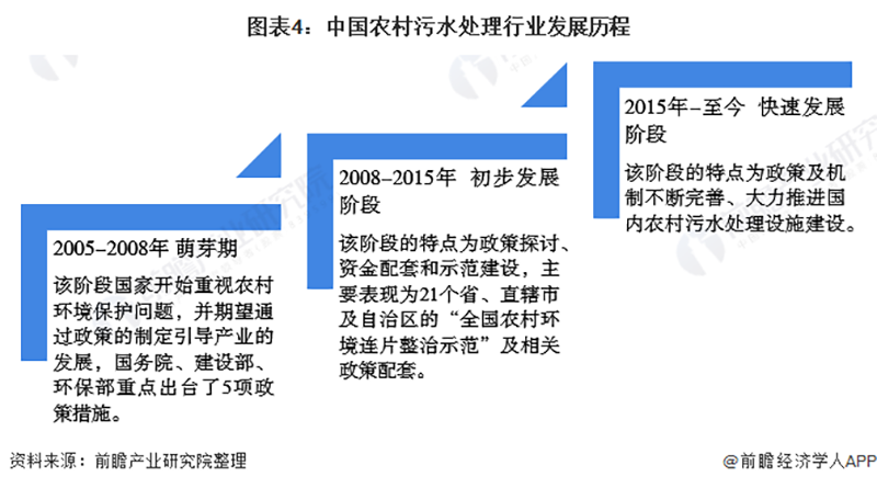 我國農(nóng)村污水處理行業(yè)主要經(jīng)歷三個發(fā)展階段: