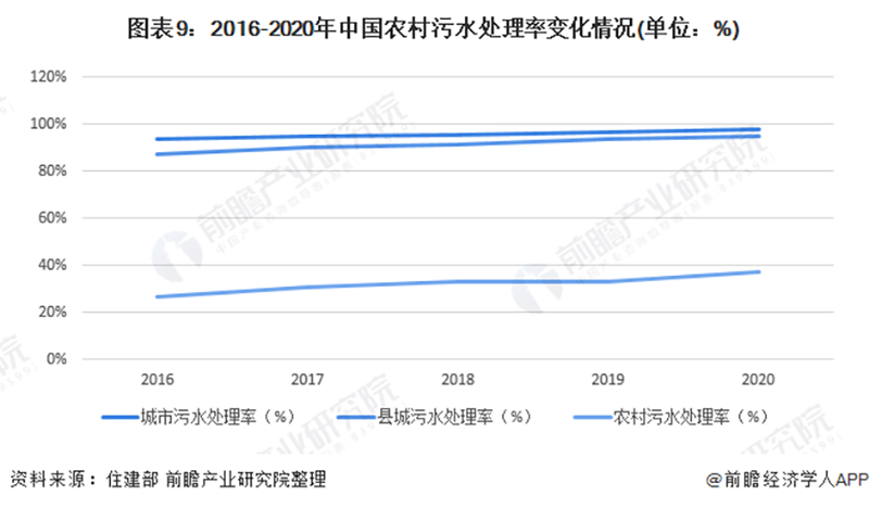 注:農(nóng)村污水處理率為前瞻根據(jù)各區(qū)域?qū)嶋H用水量及各區(qū)域污水處理率加權(quán)測算值。