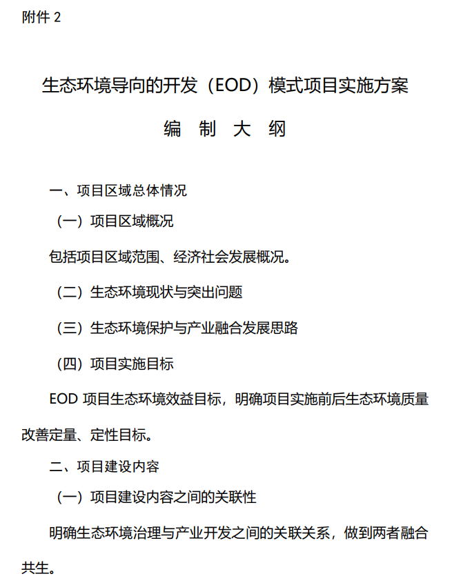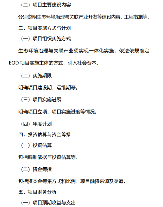 2.生態(tài)環(huán)境導(dǎo)向的開發(fā)(EOD)模式項(xiàng)目實(shí)施方案編制大綱