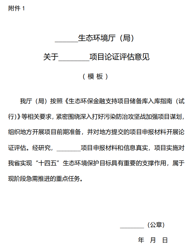 (三)省級(jí)生態(tài)環(huán)境部門項(xiàng)目論證評(píng)估意見(模板見附件1)。
