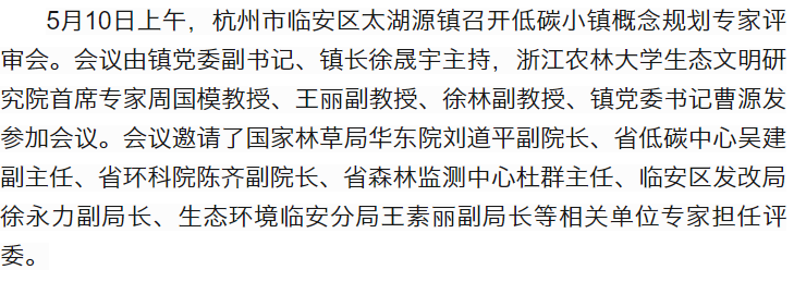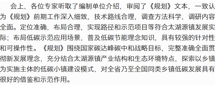 周國模教授團(tuán)隊主持的太湖源鎮(zhèn)低碳小鎮(zhèn)概念規(guī)劃通過驗收