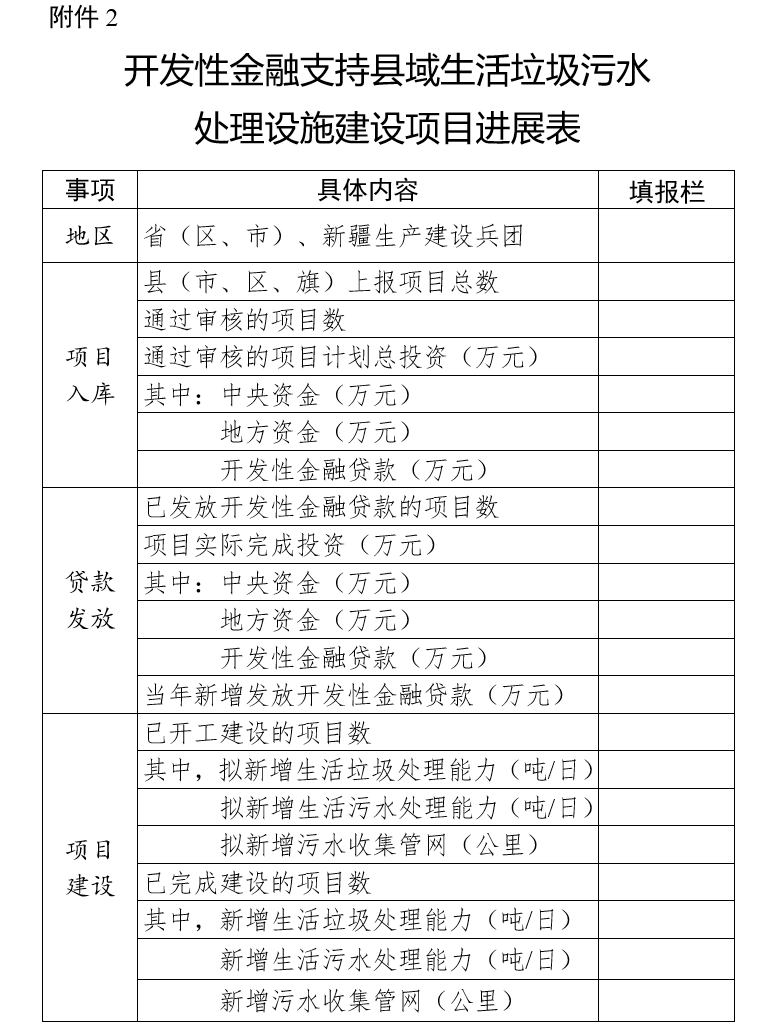 2.開(kāi)發(fā)性金融支持縣域生活垃圾污水處理設(shè)施建設(shè)項(xiàng)目進(jìn)展表