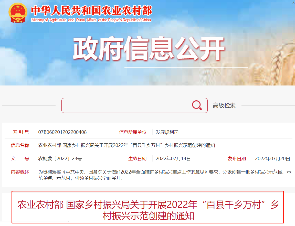 全面推進(jìn)鄉(xiāng)村振興是黨中央、國務(wù)院作出的重大部署,開展“百縣千鄉(xiāng)萬村”鄉(xiāng)村振興示范創(chuàng)建是推進(jìn)鄉(xiāng)村振興的重要舉措。為貫徹落實(shí)《中共中央、國務(wù)院關(guān)于做好2022年全面推進(jìn)鄉(xiāng)村振興重點(diǎn)工作的意見》要求,分級(jí)創(chuàng)建一批鄉(xiāng)村振興示范縣、示范鄉(xiāng)鎮(zhèn)、示范村,引領(lǐng)鄉(xiāng)村振興全面展開,現(xiàn)就開展2022年“百縣千鄉(xiāng)萬村”鄉(xiāng)村振興示范創(chuàng)建通知如下。