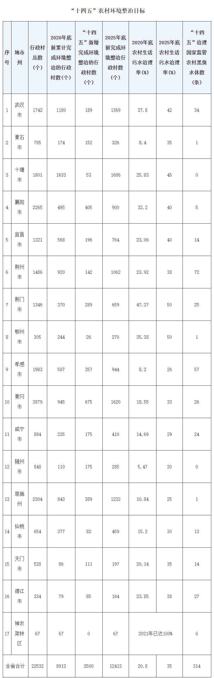 突出污水治理重點。以解決農(nóng)村生活污水等突出問題為重點,提高農(nóng)村環(huán)境整治成效和覆蓋水平。推動縣域農(nóng)村生活污水治理統(tǒng)籌規(guī)劃、建設和運維。重點治理水源保護區(qū)和城鄉(xiāng)結(jié)合部、鄉(xiāng)鎮(zhèn)政府駐地、中心村、旅游風景區(qū)等人口居住集中區(qū)域,優(yōu)先治理位于重點流域(長江、漢江、清江)、南水北調(diào)中線工程沿線區(qū)域、三峽庫區(qū)等環(huán)境敏感地區(qū)及水質(zhì)需改善控制單元范圍內(nèi)的村莊。(省生態(tài)環(huán)境廳牽頭,省農(nóng)業(yè)農(nóng)村廳、省鄉(xiāng)村振興局、省住房和城鄉(xiāng)建設廳配合,市、縣人民政府負責落實)