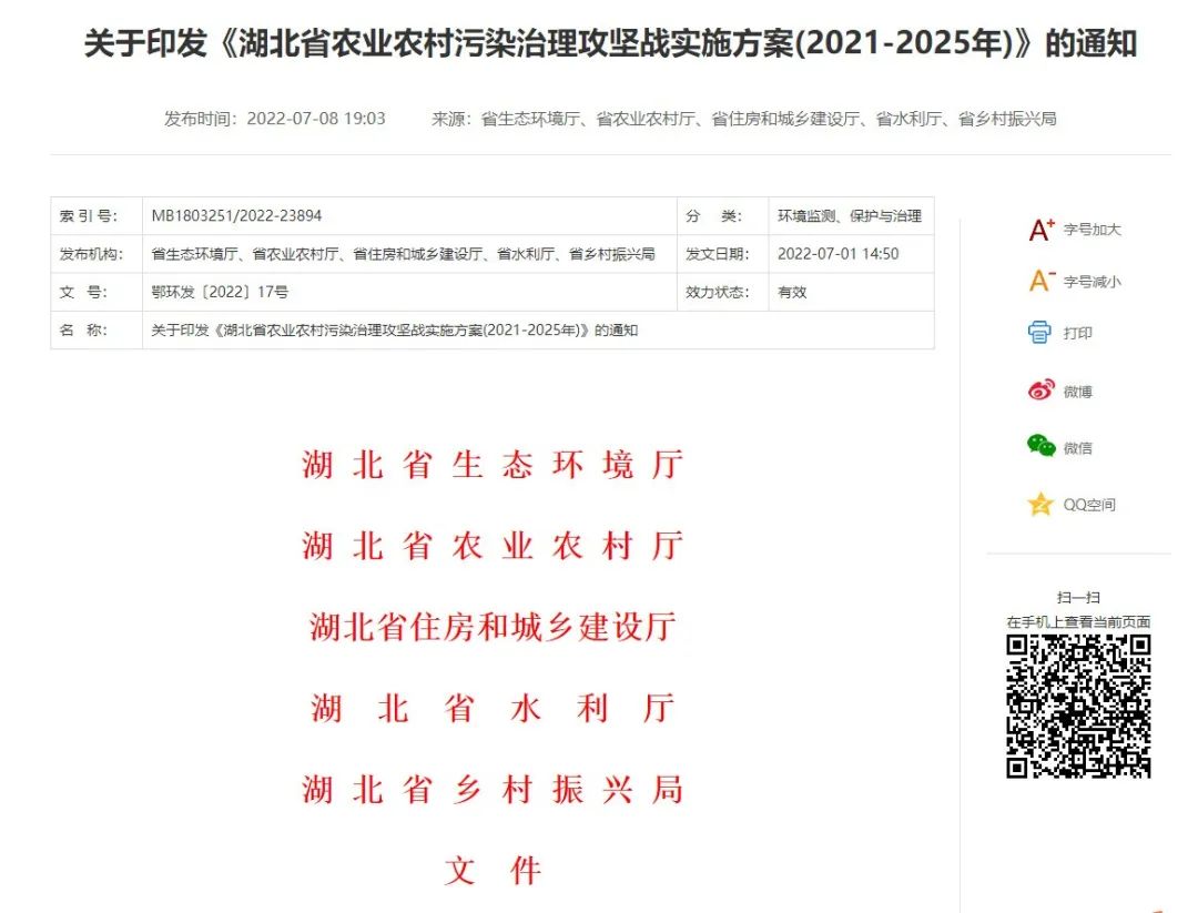 為全面貫徹落實黨中央關(guān)于深入打好污染防治攻堅戰(zhàn)的總體部署和省委、省政府有關(guān)工作意見,湖北省生態(tài)環(huán)境廳、省農(nóng)業(yè)農(nóng)村廳、省住房和城鄉(xiāng)建設廳、省水利廳、省鄉(xiāng)村振興局組織制定了《湖北省農(nóng)業(yè)農(nóng)村污染治理攻堅戰(zhàn)實施方案(2021-2025年)》。