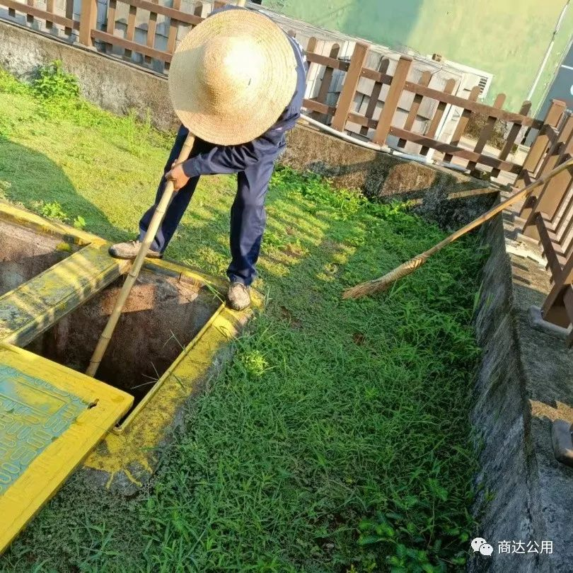 貴州仁懷農(nóng)污運(yùn)維中心工作人員清理格柵井