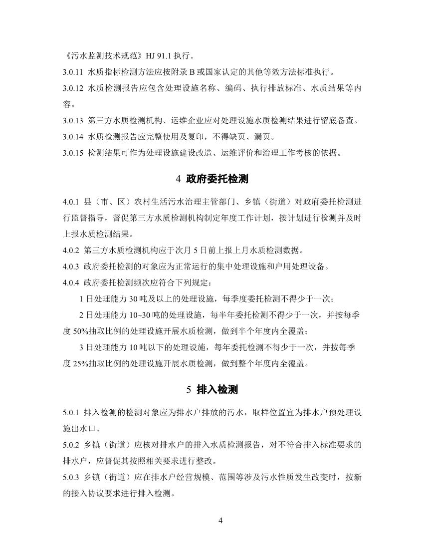 本導(dǎo)則適用于檢測農(nóng)村生活污水處理設(shè)施進出水水質(zhì)的政府委托檢測、企業(yè)自檢、排入檢測、驗收檢測和在線監(jiān)測,不適用于監(jiān)督性監(jiān)測。