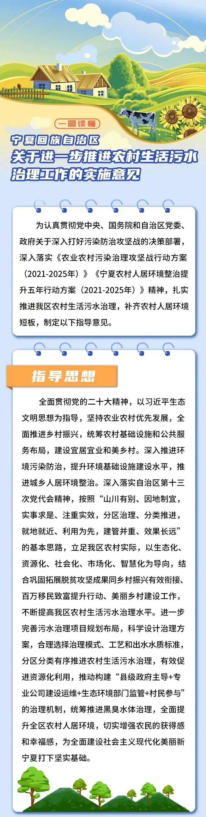 寧夏近日出臺(tái)《關(guān)于進(jìn)一步推進(jìn)農(nóng)村生活污水治理工作的實(shí)施意見(jiàn)》?!兑庖?jiàn)》提出,2022年,實(shí)現(xiàn)全區(qū)農(nóng)村生活污水治理率達(dá)到30%。到2025年,全區(qū)農(nóng)村生活污水治理率達(dá)到40%。圖解如下:
