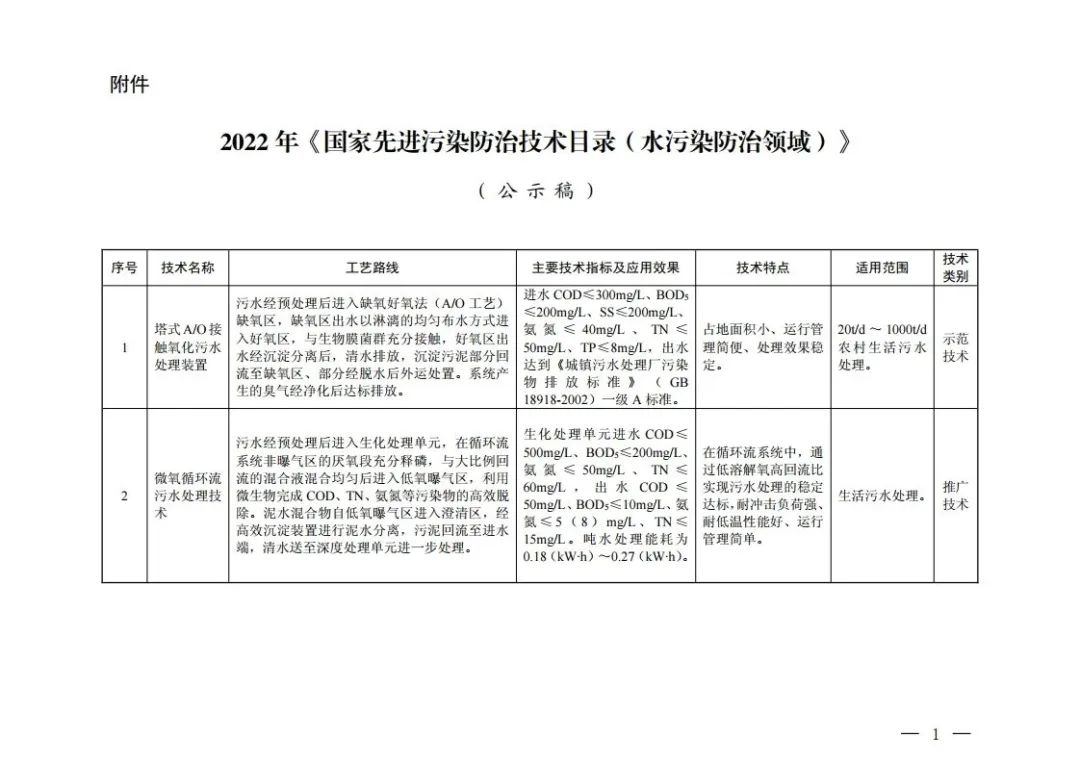 于2022年《國(guó)家先進(jìn)污染防治技術(shù)目錄(水污染防治領(lǐng)域)》(公示稿)的公示