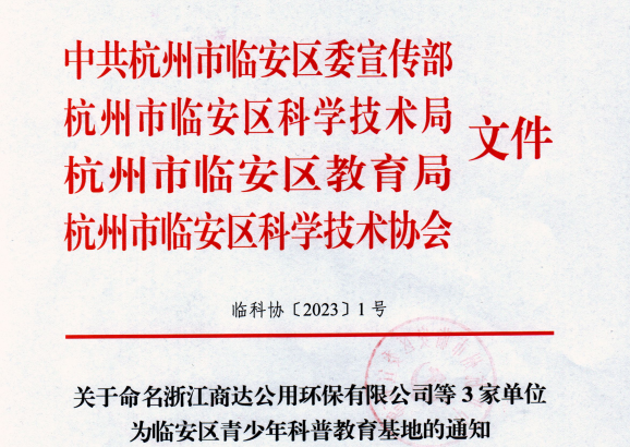 近日,商達(dá)公用臨安指南村示范站點(diǎn)(資源化站點(diǎn)、觀云站點(diǎn)、生態(tài)農(nóng)場(chǎng))再添殊榮,被臨安區(qū)宣傳部、區(qū)科技局、區(qū)教育局、區(qū)科協(xié)等四部門命名為“臨安區(qū)青少年科普教育基地”。
