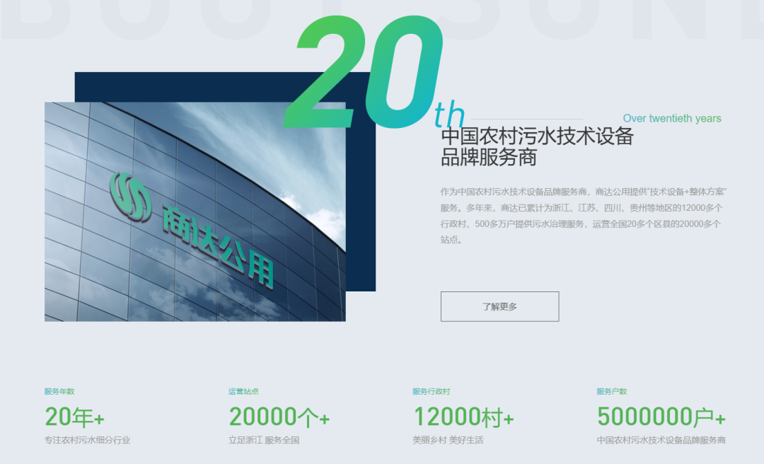 商達(dá)公用作為山東公用控股在鄉(xiāng)村環(huán)境領(lǐng)域的投資發(fā)展平臺,成立于2000年,深耕于農(nóng)村污水細(xì)分行業(yè)20年。主要業(yè)務(wù)范圍是以農(nóng)村污水治理為核心的鄉(xiāng)村環(huán)境資源治理與開發(fā)等方面為主。在鄉(xiāng)村環(huán)境領(lǐng)域,以EEM菌微生物技術(shù)為核心,提供農(nóng)村污水生態(tài)價(jià)值化“技術(shù)設(shè)備+整體方案”服務(wù),通過生態(tài)產(chǎn)業(yè)循環(huán)模式,踐行綠水青山就是金山銀山理念,實(shí)現(xiàn)環(huán)境價(jià)值導(dǎo)向開發(fā),助力鄉(xiāng)村振興。20年來,已累計(jì)為全國12000個(gè)村500萬戶提供污水治理服務(wù),運(yùn)營全國20個(gè)區(qū)縣的20000個(gè)站點(diǎn)。在E2O的村鎮(zhèn)污水處理年度盤點(diǎn)中,商達(dá)公用農(nóng)村污水處理總規(guī)模、設(shè)備供應(yīng)總規(guī)模排名第一。2020年,商達(dá)公用被評為農(nóng)村污水 “隱形冠軍”培育企業(yè);2021年,商達(dá)公用被評為浙江省“專精特新”企業(yè);2022年,商達(dá)公用榮獲浙江省AAA級“守合同重信用”企業(yè)稱號。