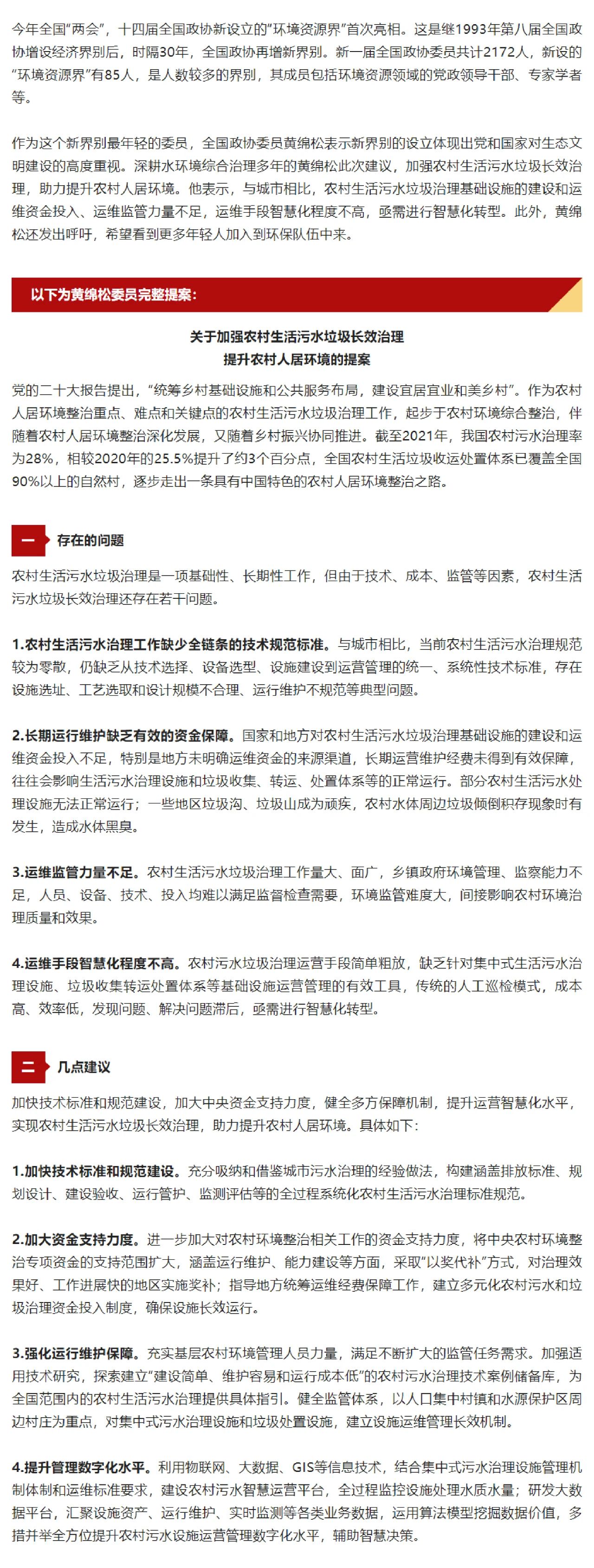 兩會(huì)代表黃綿松:加強(qiáng)農(nóng)村生活污水垃圾長(zhǎng)效治理