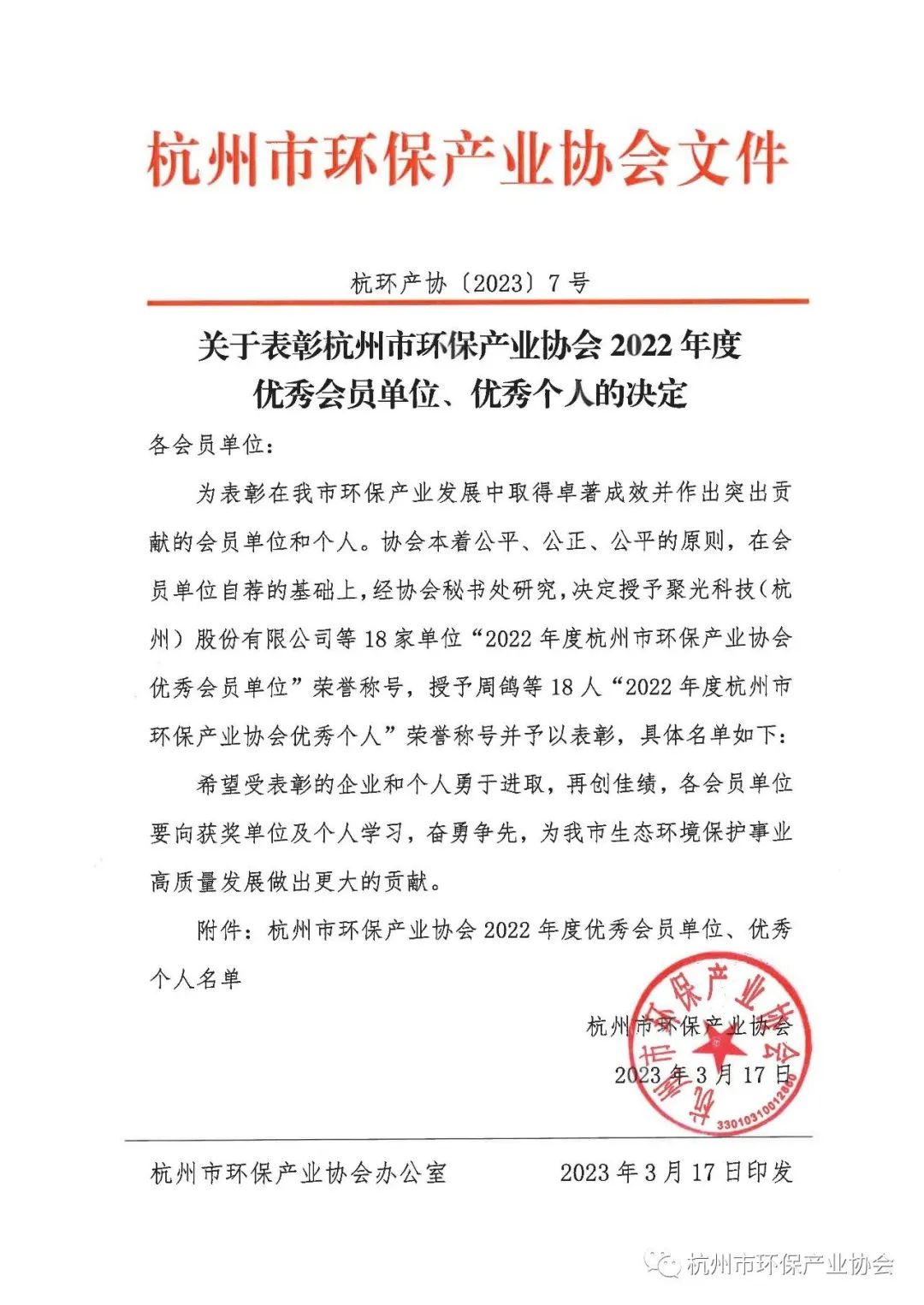 近日,杭州市環(huán)保產(chǎn)業(yè)協(xié)會開展了第二屆第四次會員大會暨迎亞運(yùn)環(huán)境保障志愿服務(wù)活動。大會中,協(xié)會表彰了在我市環(huán)保產(chǎn)業(yè)發(fā)展中取得卓著成效并作出突出貢獻(xiàn)的會員單位和個(gè)人。浙江商達(dá)公用環(huán)保有限公司榮獲“2022 年度杭州市環(huán)保產(chǎn)業(yè)協(xié)會優(yōu)秀會員單位”榮譽(yù)稱號。