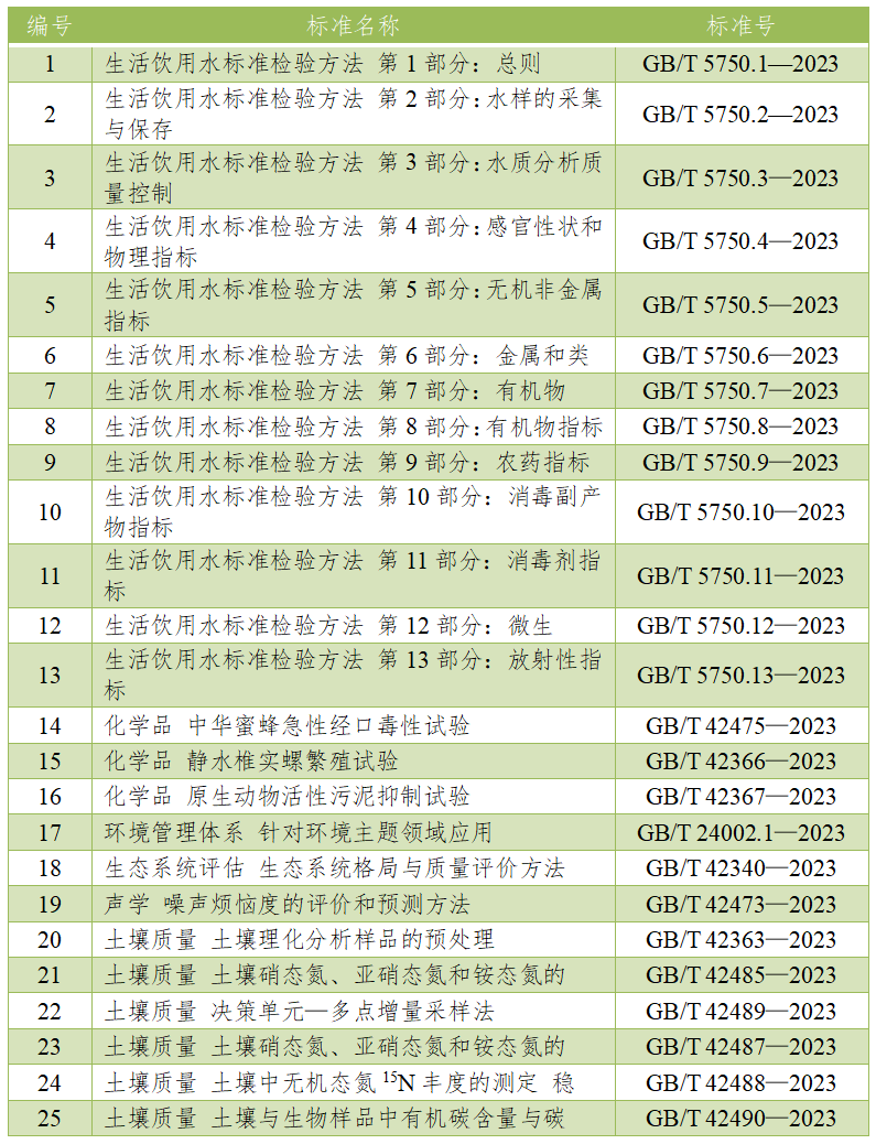 25項生態(tài)環(huán)境領(lǐng)域相關(guān)國家標(biāo)準(zhǔn)發(fā)布,詳見下表: