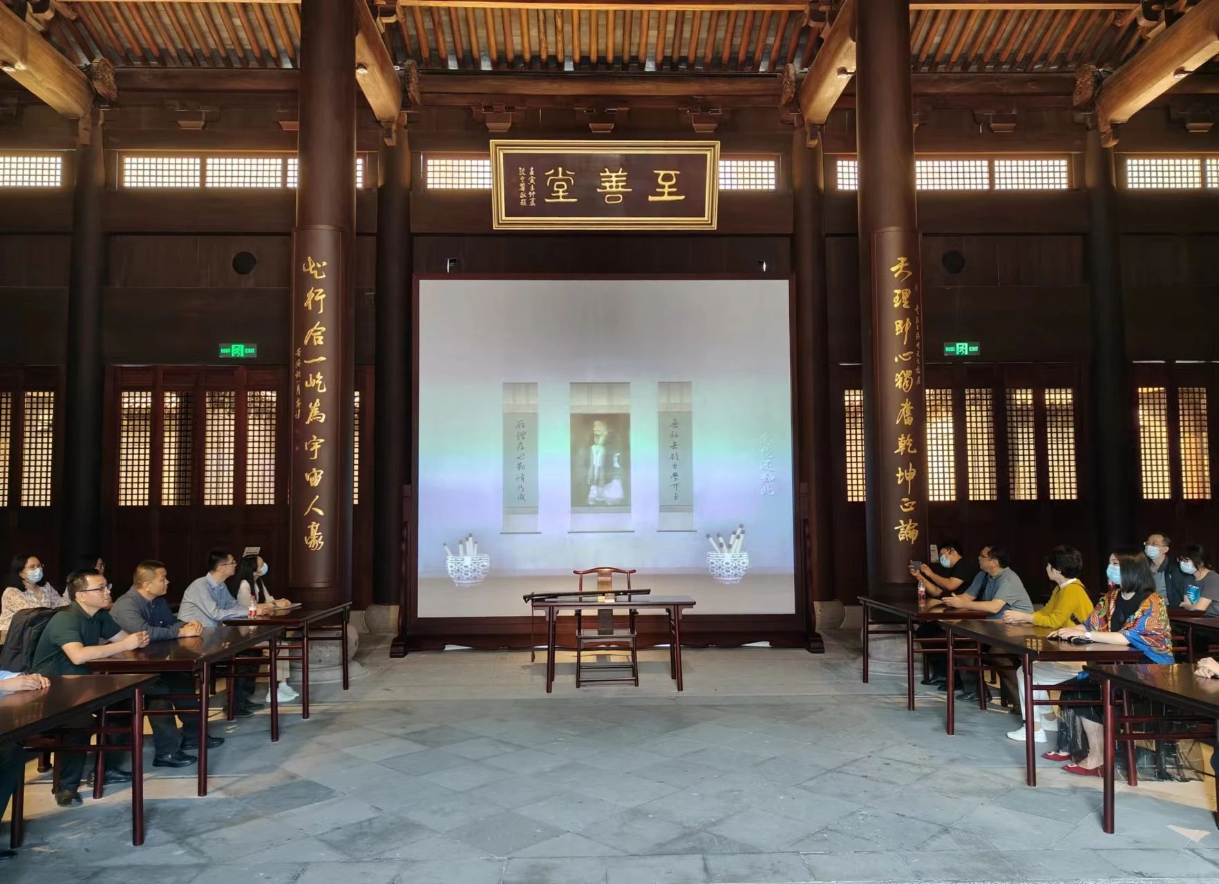 學(xué)員們端坐在至善堂,觀看其父親王華去世時(shí)王陽(yáng)明在紹興家中守孝、專(zhuān)事講學(xué)的場(chǎng)景,近距離感受陽(yáng)明心學(xué)文化。