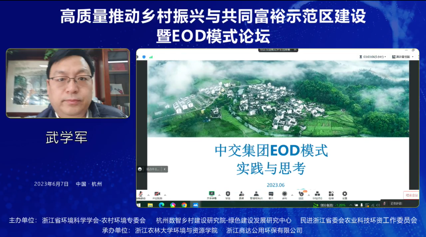 2023年6月7日,“高質(zhì)量推動(dòng)鄉(xiāng)村振興與共同富裕示范區(qū)建設(shè)暨EOD模式論壇”于杭州如期召開(kāi)。本次論壇由浙江省環(huán)境科學(xué)學(xué)會(huì)-農(nóng)村環(huán)境專(zhuān)委會(huì)、杭州數(shù)智鄉(xiāng)村建設(shè)研究院-綠色建設(shè)發(fā)展研究中心、民進(jìn)浙江省委會(huì)農(nóng)業(yè)科技環(huán)資工作委員會(huì)主辦,由浙江農(nóng)林大學(xué)環(huán)境與資源學(xué)院、浙江商達(dá)公用環(huán)保有限公司承辦。