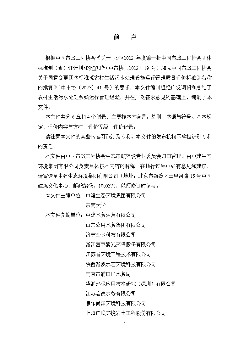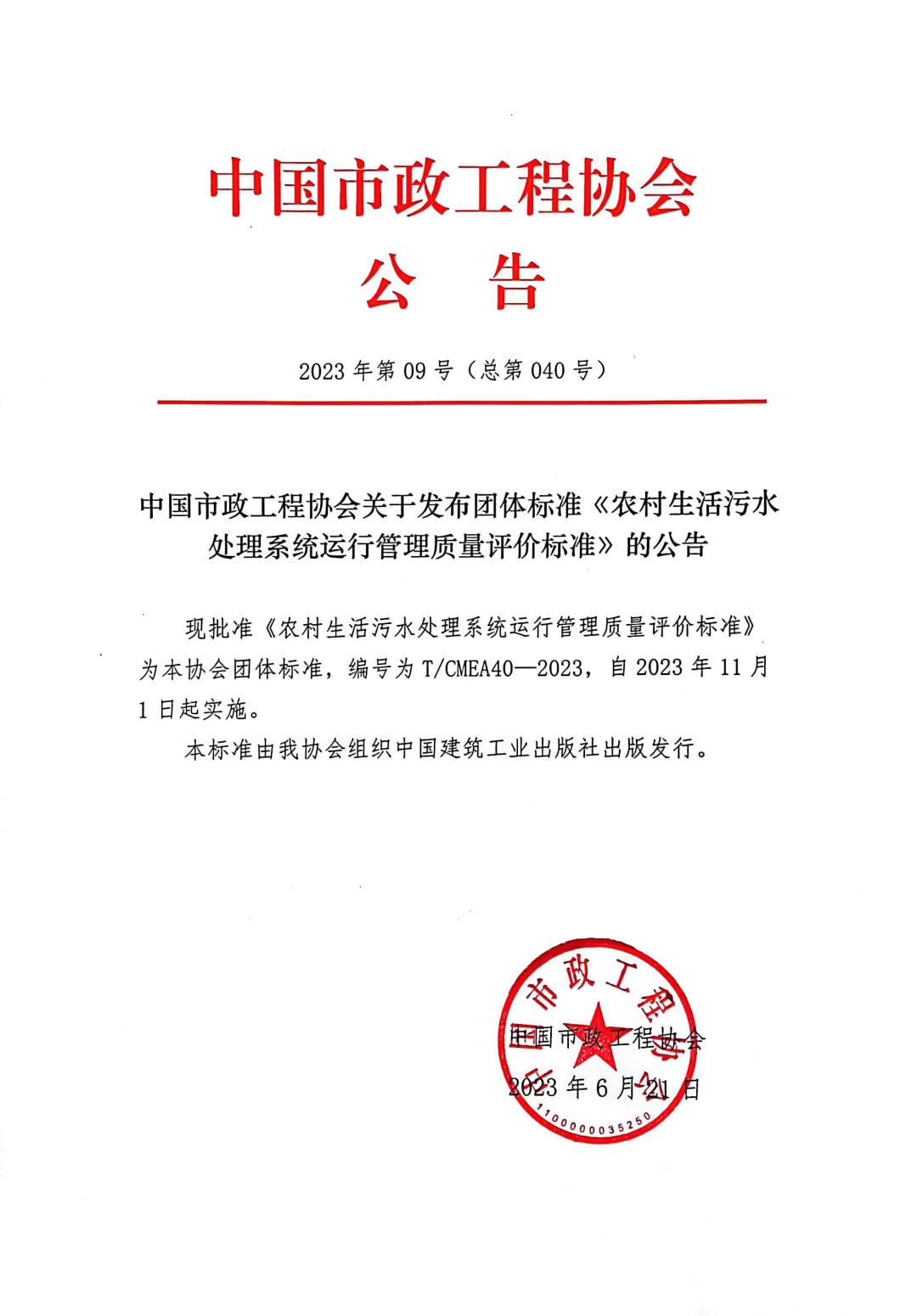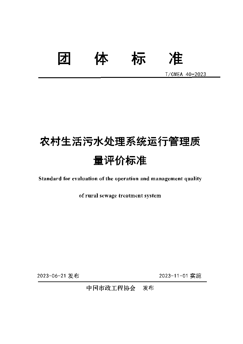 2023年6月21日,首部適用于農(nóng)污系統(tǒng)運(yùn)行質(zhì)量評(píng)價(jià)的標(biāo)準(zhǔn)《農(nóng)村生活污水處理系統(tǒng)運(yùn)行管理質(zhì)量評(píng)價(jià)標(biāo)準(zhǔn)》(T/CMEA 40-2023)(以下簡稱《標(biāo)準(zhǔn)》)經(jīng)中國市政工程協(xié)會(huì)批準(zhǔn)發(fā)布,將于2023年11月1日起正式實(shí)施。《標(biāo)準(zhǔn)》主要規(guī)定了農(nóng)村生活污水處理系統(tǒng)運(yùn)行管理質(zhì)量的評(píng)價(jià)體系、評(píng)價(jià)內(nèi)容與方法等,涵蓋了質(zhì)量管理體系、日常運(yùn)行基礎(chǔ)管理、收集系統(tǒng)運(yùn)行維護(hù)、污水處理設(shè)施運(yùn)行維護(hù)、水質(zhì)管理和公眾服務(wù)滿意6個(gè)要素、30個(gè)指標(biāo)?!稑?biāo)準(zhǔn)》適用于處理規(guī)模在500m3/d及以下的農(nóng)村生活污水處理系統(tǒng)的運(yùn)行管理質(zhì)量評(píng)價(jià)。《標(biāo)準(zhǔn)》編制團(tuán)隊(duì)通過廣泛調(diào)研并總結(jié)主編、參編單位在農(nóng)村生活污水治理方面的運(yùn)營實(shí)踐經(jīng)驗(yàn),充分考慮農(nóng)村生活污水處理系統(tǒng)的固有特性,針對(duì)治理效果、管理質(zhì)量、村民滿意度等方面建立了全面科學(xué)的評(píng)估體系,首次實(shí)現(xiàn)了對(duì)不同地區(qū)農(nóng)村生活污水處理系統(tǒng)運(yùn)行管理質(zhì)量的量化比較,明確了評(píng)價(jià)對(duì)象的等級(jí)劃分要求。《標(biāo)準(zhǔn)》有效充實(shí)和完善了我國農(nóng)村生活污水治理標(biāo)準(zhǔn)體系,對(duì)于改善當(dāng)前我國農(nóng)村生活污水處理系統(tǒng)重建設(shè)、輕運(yùn)營的現(xiàn)狀,提高農(nóng)村生活污水處理系統(tǒng)運(yùn)行管理和績效水平具有指導(dǎo)意義。該標(biāo)準(zhǔn)可指導(dǎo)農(nóng)村生活污水處理系統(tǒng)運(yùn)行管理單位開展自我評(píng)價(jià),也為管理部門或第三方機(jī)構(gòu)評(píng)估農(nóng)村生活污水處理系統(tǒng)運(yùn)行管理質(zhì)量提供了重要的方法依據(jù)。下一步,中國市政工程協(xié)會(huì)生態(tài)市政建設(shè)專業(yè)委員會(huì)將以該標(biāo)準(zhǔn)提出的評(píng)價(jià)方法為依據(jù),開展農(nóng)村生活污水處理系統(tǒng)運(yùn)行管理質(zhì)量的認(rèn)證評(píng)價(jià)工作。該標(biāo)準(zhǔn)由中建生態(tài)環(huán)境集團(tuán)有限公司、東南大學(xué)主編,中建水務(wù)運(yùn)營有限公司、山東公用水務(wù)集團(tuán)有限公司、濟(jì)寧金水科技有限公司、浙江富春紫光環(huán)保股份有限公司、江蘇省環(huán)境工程技術(shù)有限公司、陜西新泓水藝環(huán)境科技有限公司、南京市浦口區(qū)水務(wù)局、華潤環(huán)保應(yīng)用技術(shù)研究(深圳)有限公司、江蘇啟德水務(wù)有限公司、焦作尚澤環(huán)境科技有限公司、上海廣聯(lián)環(huán)境巖土工程股份有限公司、溧陽中建桑德環(huán)境治理有限公司、江蘇東澤源環(huán)境科技有限公司、華夏碧水環(huán)??萍脊煞萦邢薰尽⒅袊姓こ讨心显O(shè)計(jì)研究總院有限公司、溫州大學(xué)、陜西林楓潤澤環(huán)境工程技術(shù)有限公司、廣州資源環(huán)??萍脊煞萦邢薰尽⒏=ㄖ锌迫齼舡h(huán)保股份有限公司、黃岡金寶馬環(huán)??萍技瘓F(tuán)有限公司、湖北金寶馬環(huán)保科技有限公司、江蘇點(diǎn)石工程管理有限責(zé)任公司、ANSO環(huán)境科技產(chǎn)業(yè)聯(lián)盟共計(jì)23家單位參與編制。