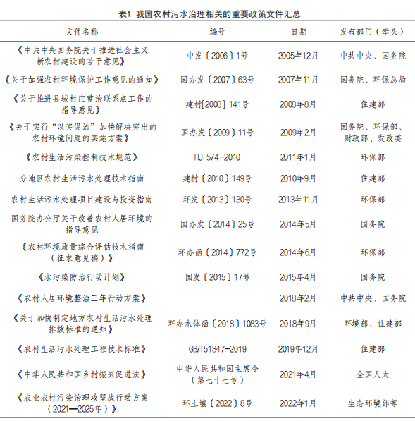 從21世紀(jì)初開始,國家層面發(fā)布了一系列關(guān)于農(nóng)村污水治理的政策文件,有力地推動(dòng)了農(nóng)村污水治理事業(yè)的發(fā)展。