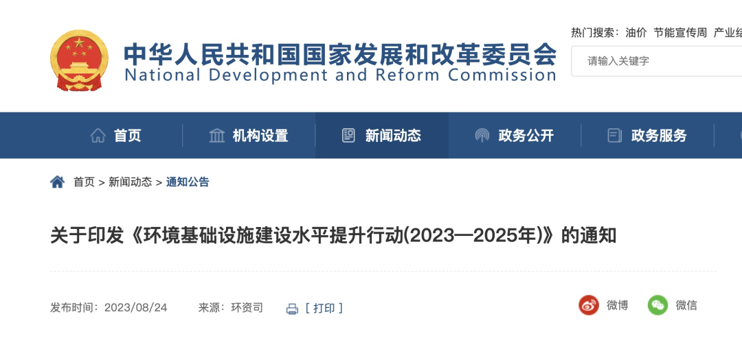 國(guó)家發(fā)展改革委等部門(mén)關(guān)于印發(fā)《環(huán)境基礎(chǔ)設(shè)施建設(shè)水平提升行動(dòng)(2023—2025年)》的通知