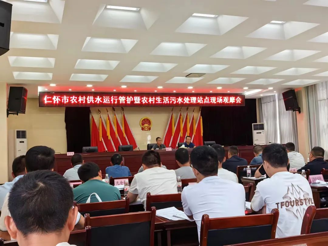 2023 年 9 月 16 日,貴州仁懷市市政府領(lǐng)導(dǎo)主持召開農(nóng)村供水運行管護暨農(nóng)村生活污水處理站點現(xiàn)場觀摩會議。會后,市水務(wù)局局長現(xiàn)場帶隊觀摩考察該項目示范站點。