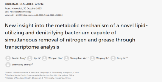 近日,浙江農(nóng)林大學(xué)農(nóng)村環(huán)境研究所鄭展望教授團隊在環(huán)境微生物EEM菌種資源研發(fā)與應(yīng)用方面取得重要進展,相關(guān)成果以研究論文形式發(fā)表在高水平SCI TOP期刊《Frontiers in Microbiology》(IF=5.2),題為 “New insight into the metabolic mechanism of a novel lipid-utilizing and denitrifying bacterium capable of simultaneous removal of nitrogen and grease through transcriptome analysis”。