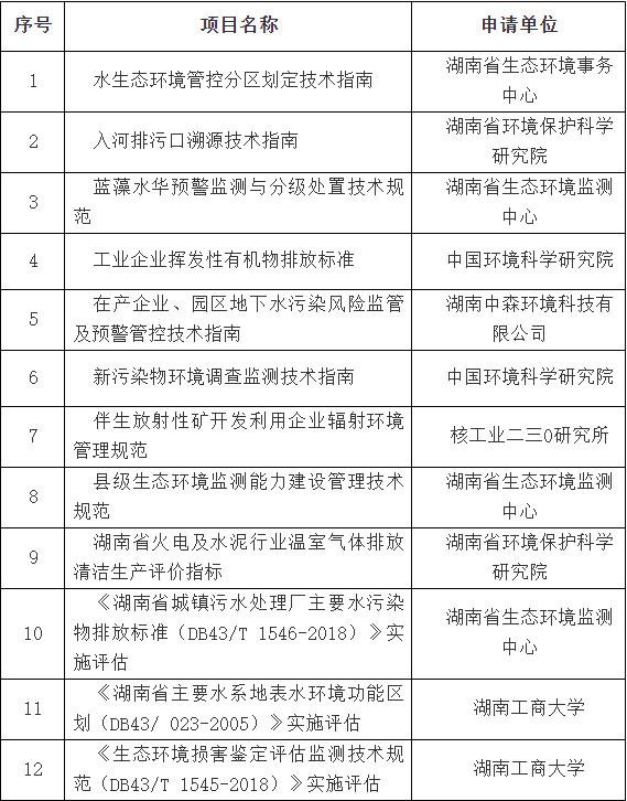 湖南省生態(tài)環(huán)境廳公示2024年擬推薦的地方生態(tài)環(huán)境標(biāo)準(zhǔn)項(xiàng)目,其中包含水生態(tài)環(huán)境管控分區(qū)劃定技術(shù)指南、入河排污口溯源技術(shù)指南、藍(lán)藻水華預(yù)警監(jiān)測(cè)與分級(jí)處置技術(shù)規(guī)范、工業(yè)企業(yè)揮發(fā)性有機(jī)物排放標(biāo)準(zhǔn)、在產(chǎn)企業(yè)、園區(qū)地下水污染風(fēng)險(xiǎn)監(jiān)管及預(yù)警管控技術(shù)指南、新污染物環(huán)境調(diào)查監(jiān)測(cè)技術(shù)指南、伴生放射性礦開發(fā)利用企業(yè)輻射環(huán)境管理規(guī)范、縣級(jí)生態(tài)環(huán)境監(jiān)測(cè)能力建設(shè)管理技術(shù)規(guī)范、湖南省火電及水泥行業(yè)溫室氣體排放清潔生產(chǎn)評(píng)價(jià)指標(biāo)、《湖南省城鎮(zhèn)污水處理廠主要水污染物排放標(biāo)準(zhǔn)(DB43/T 1546-2018)》實(shí)施評(píng)估、《湖南省主要水系地表水環(huán)境功能區(qū)劃(DB43/ 023-2005)》實(shí)施評(píng)估、《生態(tài)環(huán)境損害鑒定評(píng)估監(jiān)測(cè)技術(shù)規(guī)范(DB43/T 1545-2018)》實(shí)施評(píng)估等共12項(xiàng)地方標(biāo)準(zhǔn)項(xiàng)目,詳情如下: