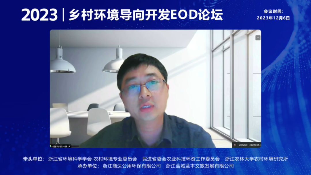 浙江省環(huán)境科學(xué)學(xué)會(huì)-農(nóng)村環(huán)境專委會(huì)主任、民進(jìn)浙江省委會(huì)農(nóng)業(yè)科技環(huán)資工委主任、浙江農(nóng)林大學(xué)農(nóng)村環(huán)境研究所所長(zhǎng)、浙江商達(dá)公用環(huán)保有限公司執(zhí)行董事浙江省環(huán)境科學(xué)學(xué)會(huì)農(nóng)村環(huán)境專委會(huì)主任、民進(jìn)浙江省委會(huì)農(nóng)業(yè)科技環(huán)資工委主任、浙江農(nóng)林大學(xué)農(nóng)村環(huán)境研究所所長(zhǎng)、浙江商達(dá)公用環(huán)保有限公司執(zhí)行董事鄭展望教授作《鄉(xiāng)村環(huán)境價(jià)值產(chǎn)業(yè)開(kāi)發(fā)--“碧水漁倉(cāng)”項(xiàng)目模式實(shí)踐》主題報(bào)告,詳細(xì)分享了“碧水漁倉(cāng)”項(xiàng)目模式,該模式包括三水(原水、循環(huán)水、尾水)處理系統(tǒng)、智慧養(yǎng)魚(yú)系統(tǒng)、生態(tài)循環(huán)系統(tǒng)3個(gè)子系統(tǒng),具有標(biāo)準(zhǔn)化、高效化、綠色化、智慧化等特點(diǎn),可實(shí)現(xiàn)集約、高產(chǎn)、生態(tài)、安全養(yǎng)殖,并通過(guò)“中心廠+前置倉(cāng)”的產(chǎn)業(yè)運(yùn)營(yíng)模式,助力EOD項(xiàng)目推進(jìn),將鄉(xiāng)村振興與生態(tài)產(chǎn)業(yè)相融合,提高生態(tài)效益和經(jīng)濟(jì)效益,做到以生態(tài)旺鄉(xiāng)村,以振興強(qiáng)生態(tài),以生態(tài)文明建設(shè)引領(lǐng)鄉(xiāng)村振興。