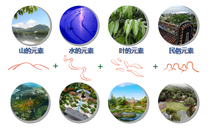 設(shè)計內(nèi)容:新建生態(tài)文化(山生態(tài)文化、水生態(tài)文化)和現(xiàn)有民俗文化共同發(fā)展,新舊文化共榮。