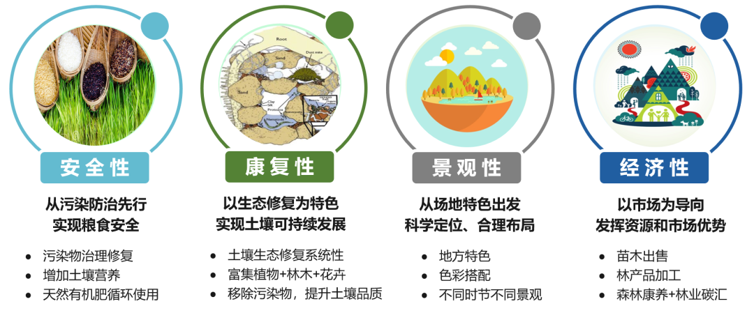 針對土壤修復(fù)經(jīng)濟性差、產(chǎn)業(yè)落后;農(nóng)民就業(yè)難 、農(nóng)村空巢;缺林少綠、土壤退化等問題,需要綠色供給,打造新業(yè)態(tài),供給側(cè)改革,結(jié)合景觀旅游、森林康養(yǎng)、林下經(jīng)濟等產(chǎn)業(yè),起到糧食安全、生命保障,增加就業(yè)、提高收入,森林增加、產(chǎn)業(yè)提升,固碳減排、土壤提質(zhì),人群健康 、文化活躍的作用效果。
