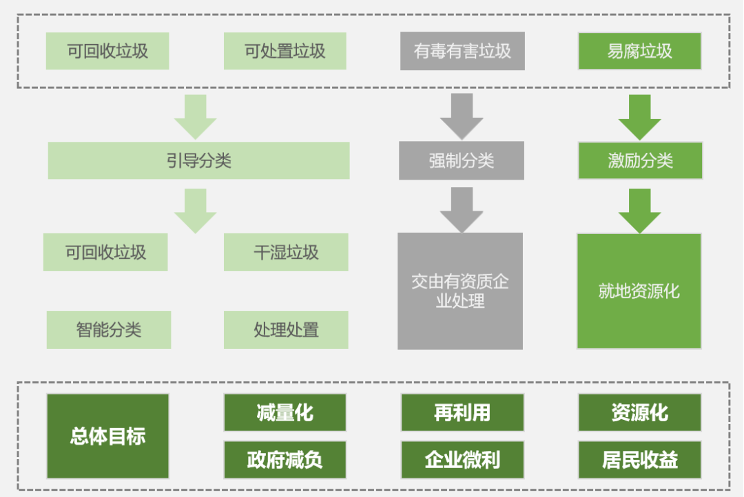 建立可回收垃圾和可處置垃圾獎勵分類,以政府政策支持及相關(guān)監(jiān)管、考核獎懲體系保障分類工作順利實施。