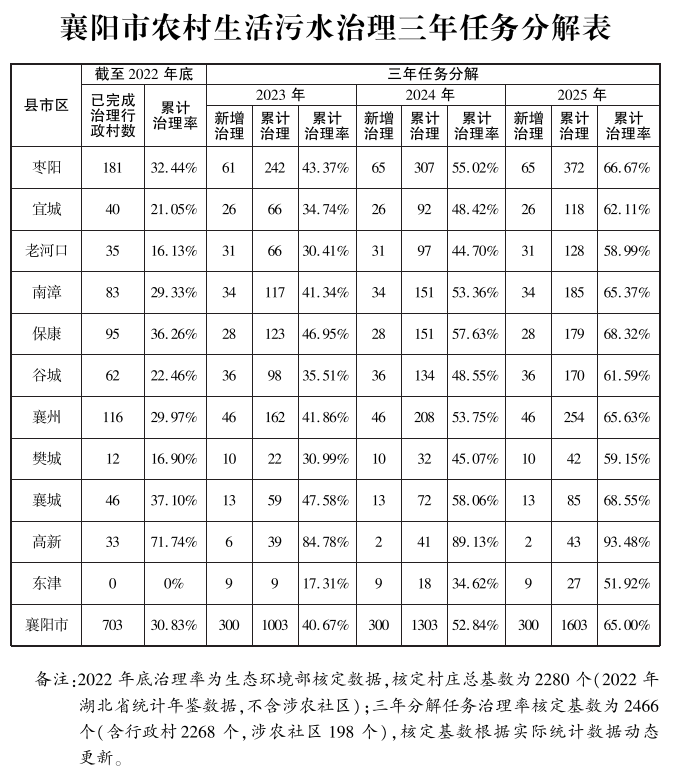 襄陽市人民政府辦公室關(guān)于印發(fā)襄陽市農(nóng)村生活污水治理三年行動(dòng)方案(2023—2025年)的通知