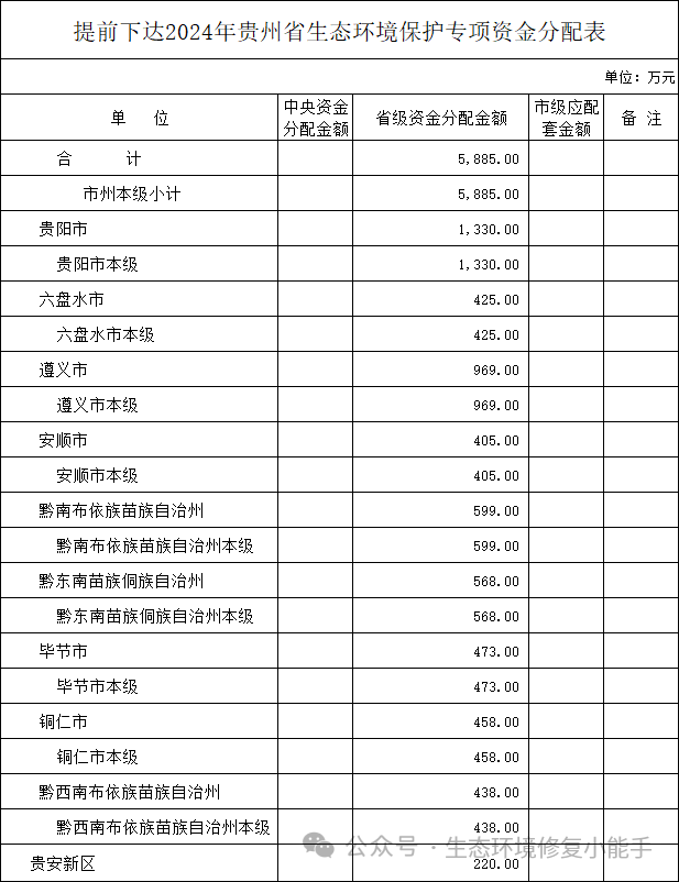 附件:1.提前下達2024年貴州省生態(tài)環(huán)境保護專項資金分配表
