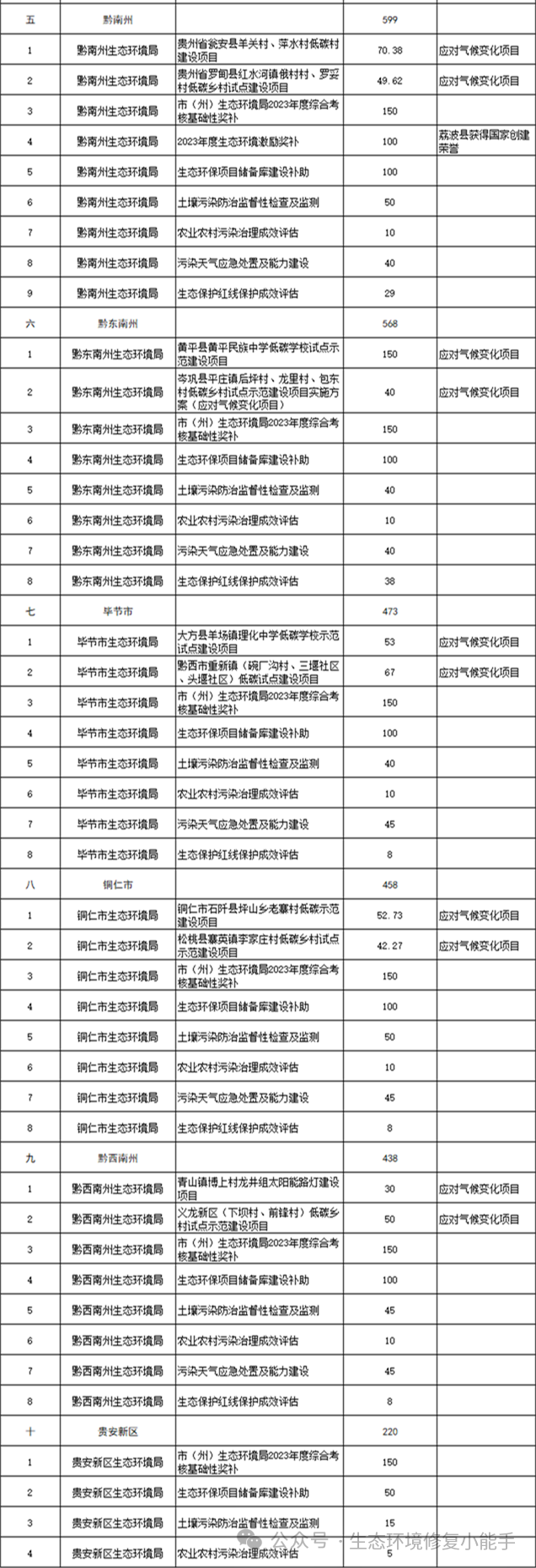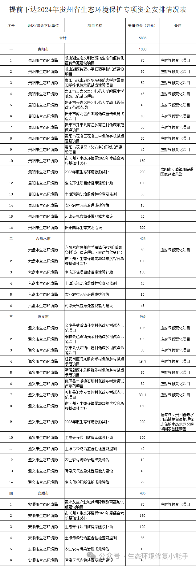 2.提前下達2024年貴州省生態(tài)環(huán)境保護專項資金安排情況表