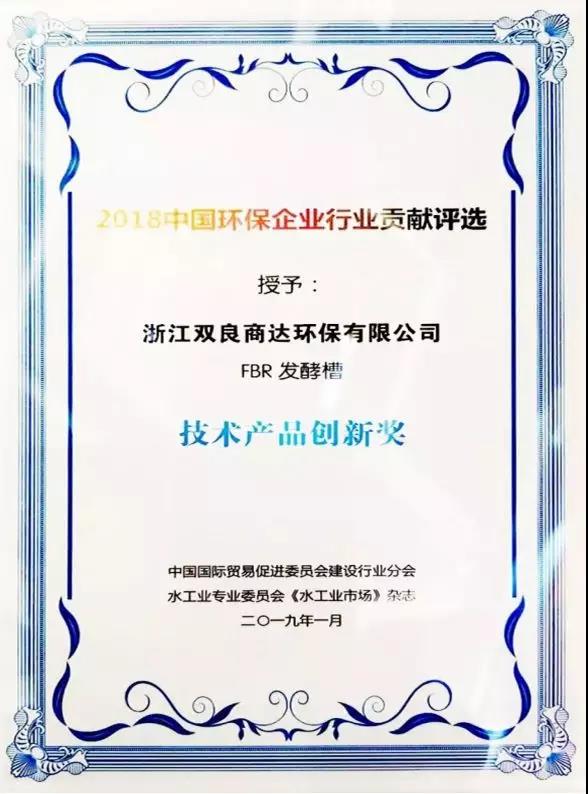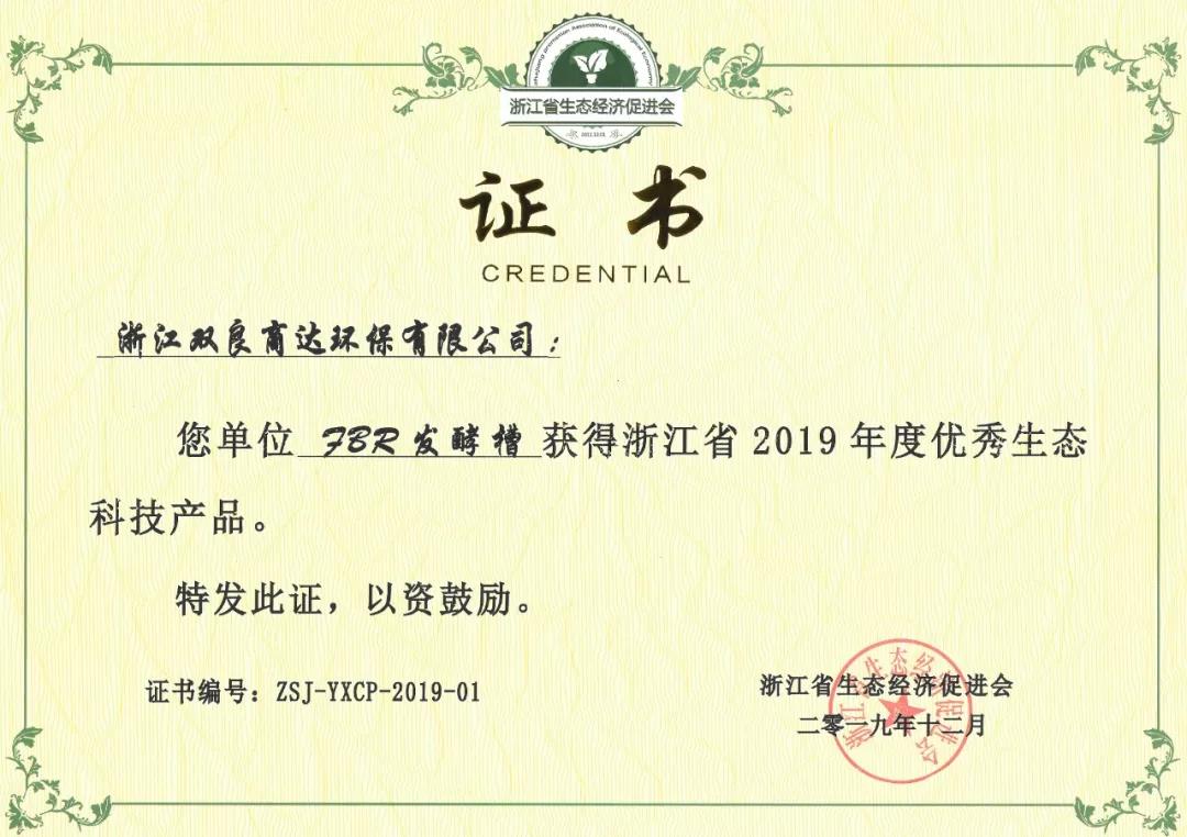 9、FBR發(fā)酵槽榮獲浙江省“2019年度優(yōu)秀科技生態(tài)產(chǎn)品”及村鎮(zhèn)環(huán)境聯(lián)盟“技術產(chǎn)品創(chuàng)新獎”