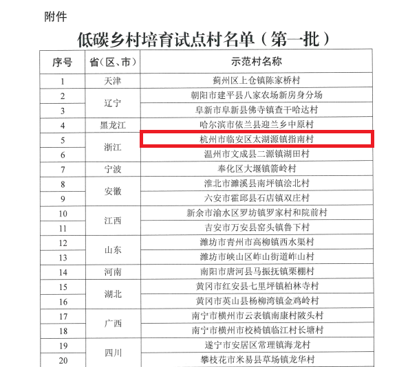 近日,農(nóng)業(yè)農(nóng)村部農(nóng)業(yè)生態(tài)與資源保護(hù)總站公布了第一批低碳鄉(xiāng)培育試點(diǎn)村名單,臨安區(qū)太湖源鎮(zhèn)指南村成功入選。